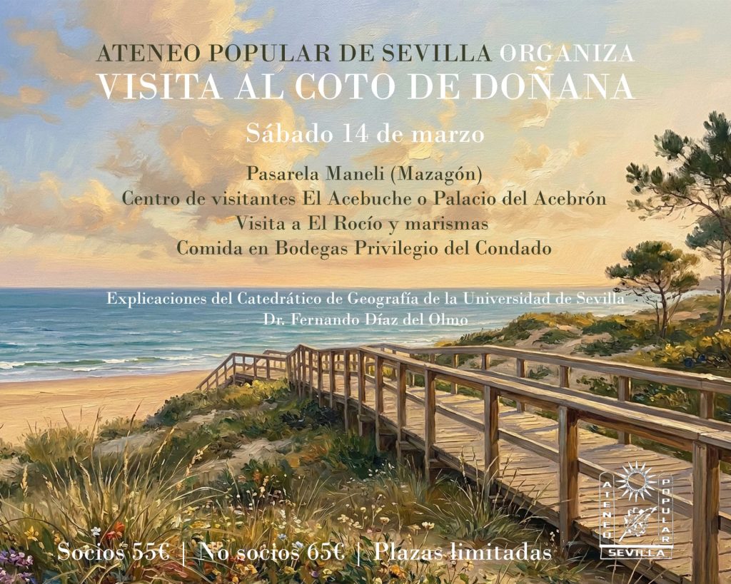 El sábado 14 de marzo realizaremos una excursión en autobús al Coto de Doñana (Huelva), con visitas a distintos enclaves de gran interés natural y cultural.